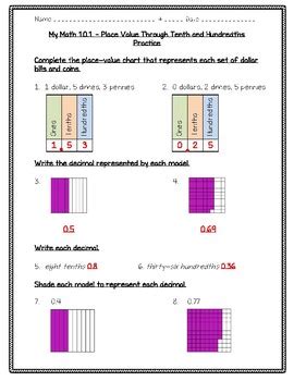 Decimal Models 4th Grade Math Worksheet Greatschools Decimals